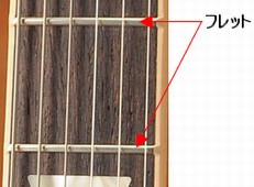 フレットとフレットの間を押えることによって、音程を変えていく。