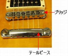 レスポールタイプは、ブリッジとは別にテールピースというパーツが付いている。