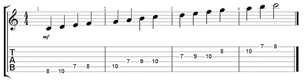 7-10フレットで弾く[Cメジャースケール]