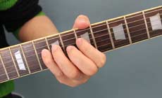 ちなみに、開放弦を使ったポジションのところでも説明したように、同じ弦で続いて高いフレット側に押さえていく場合、前の指は押さえたままにしておきます。