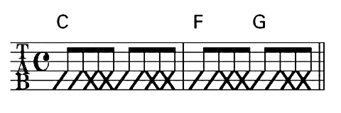 ▲2・4拍目でブラッシングを入れる8ビートのストローク。