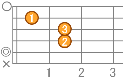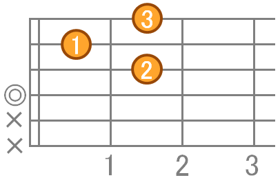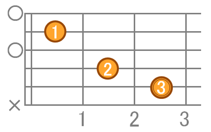 EからDへのチェンジは、人差指は離してしまわず、3弦1フレットから3弦2フレットにスライドさせる感じで移動するとスムーズ。