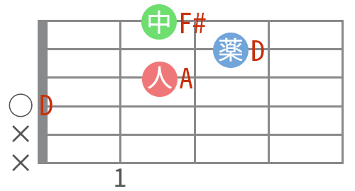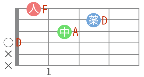 例えばこのDmの場合、実際にコードを押さえてみると1弦がFになります。