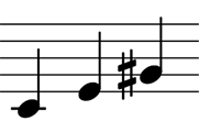 ディミニッシュコードが、全ての音の間隔が短3度で構成されたコードだったように、オーギュメントコードは全ての音の間隔が長3度といえます。