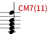 例えば、CM7に11thのF音を足すとCM7(11)になりそうですが、基本的にこのコードは使えません。