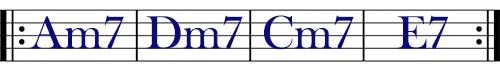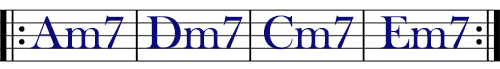 このコード進行を繰り返し弾いてみてください。