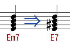 だったら、Em7をE7にしてトライトーンを作っちゃえばいいんじゃない?