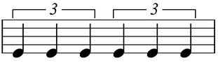 原音符の半分の音価の音符を3つ並べて、3の数字を付け足します。