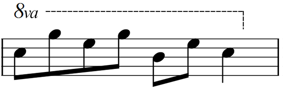 「8va」は実際には楽譜の音より8度上の音程で弾きなさいという意味です。