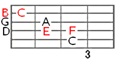 0フレットが開放弦となるので、あまりスケールを弾いてる実感はなかったかもしれませんが、5弦3フレットから始まるCメジャースケールは実はこのポジションです。